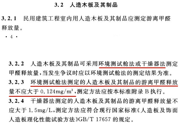 對室內裝飾裝修設計提出了污染控制預評估要求及材料選用具體要求,為室內污染治理企業開展事前治理提供了新的方向。以人造板為例,規定其甲醛釋放量不應大于0.124㎎/m³,材料甲醛釋放量檢測采用人造板甲醛釋放量測定的環境測試艙法和干燥器法。